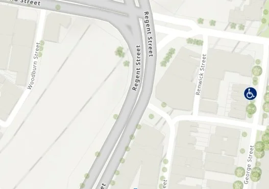 There is no accessible parking available on Woodburn Street. The closest accessible parking to Woodburn Creatives is a five-minute (290m) walk on George Street, as shown on the map below. There is some free parking available on Woodburn Street.